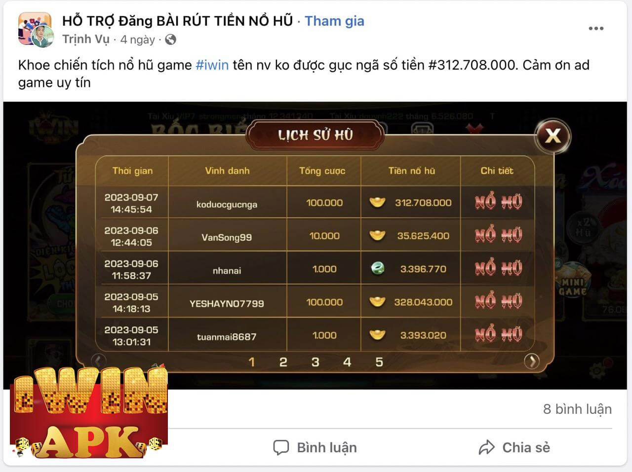 Lưu ý: Hình ảnh được lấy trực tiếp từ các group cộng đồng game bài đổi thưởng tại facebook và các nhóm game bài có lượng thành viên lớn nhất được liệt kê dưới đây. Bạn đọc có thể vào group để xác thực thông tin.