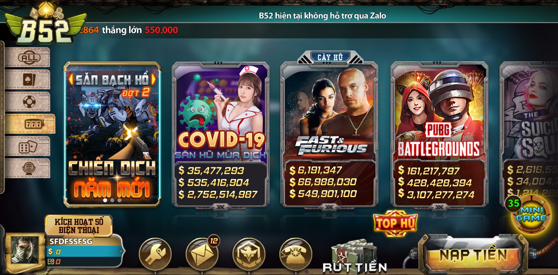 - Người chơi đông nên thưởng nổ hủ rất lớn và tầng suất nổ hũ rất thường xuyên